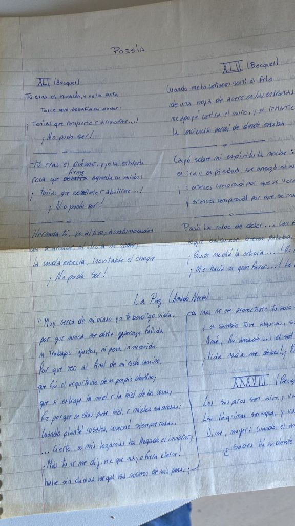 Tenía una amiga en Bahía Blanca y nos enviábamos cartas. Hace algún tiempo me mandó fotos de algunos poemas de Bécquer transcriptos con mi letra de nena.