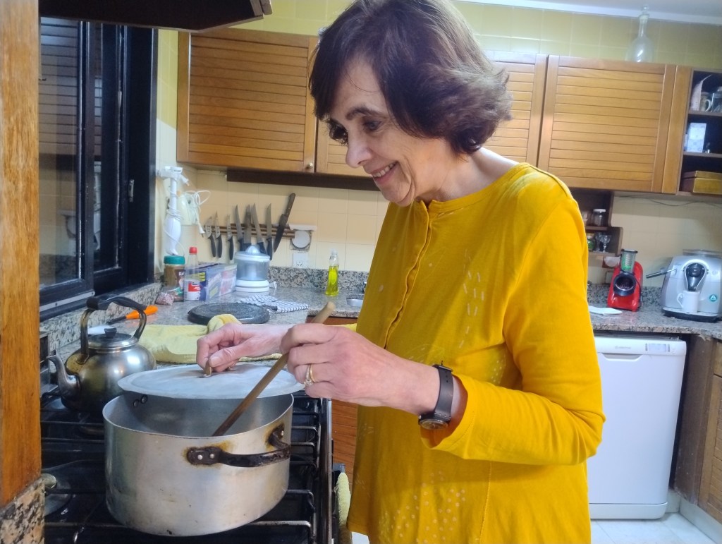 AS: Cuando me casé (el 2 de octubre se cumplen 50 años) nunca había cocinado, me interesaba la cocina pero con una mirada teórica. Mi mamá no me dejaba entrar a la cocina para que no hiciera enchastre, y tenía mucha razón. En ese sentido, soy una calamidad, cuando termino mis platos, la cocina queda convertida en un desastre importante. Aprendí haciendo y experimentando con mi pobre marido como conejillo de Indias. En su momento fue duro, me acuerdo que decía que yo era la única cocinera capaz de sacar algo crudo y quemado al mismo tiempo. Pero sobrevivió y hoy está muy contento con mis habilidades culinarias.