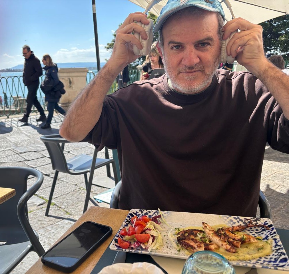 Más tarde, de visita en Buenos Aires, nos encontramos en persona en un recorrido callejero que combinaba observación de lugares y escritura. Siempre hubo un vínculo atravesado por el humor: recuerdo que durante una boda real le mandé la foto de una invitada que llevaba una cartera que simulaba el libro En busca del tiempo perdido, de su amado Proust y que él se tomó el trabajo de investigar de qué iba ese asunto 🙂 .